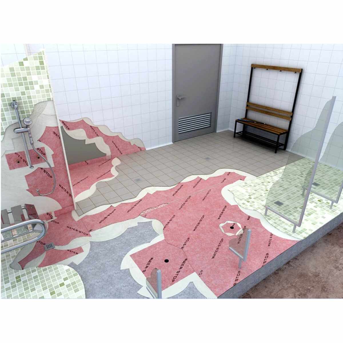 Συνθετική πλαστική μεμβράνη 50% πολυεστέρας - 50% πολυπροπυλένιο από μη υφασμένο υλικό και στις δύο πλευρές. Εφαρμογή κάτω από πλακάκια με κόλλα πλακιδίων λεπτού στρώματος, ιδανική για χώρους που χρήζουν αδιαβροχοποίησης Με το waterstop οι εργατοώρες μειώνονται κατά πολύ καθώς απαιτείται λιγότερος χρόνος και υλικά για την εγκατάσταση του. Συνεπώς το υλικό αυτό είναι μακράν η πιο οικονομική και αποτελεσματική λύση αδιαβροχοποίηση δαπέδων και τοίχων κάτω από διάφορες επιφάνειες και πλακάκια σε εσωτερικούς και εξωτερικούς χώρους Με υγρασία με μόλις 0,7 mm πάχος εγκαθίσταται χωρίς την ανάγκη επιπλέον επιστρώσεων διαθέσιμο σε 1X5m 1X30m και 2X20m