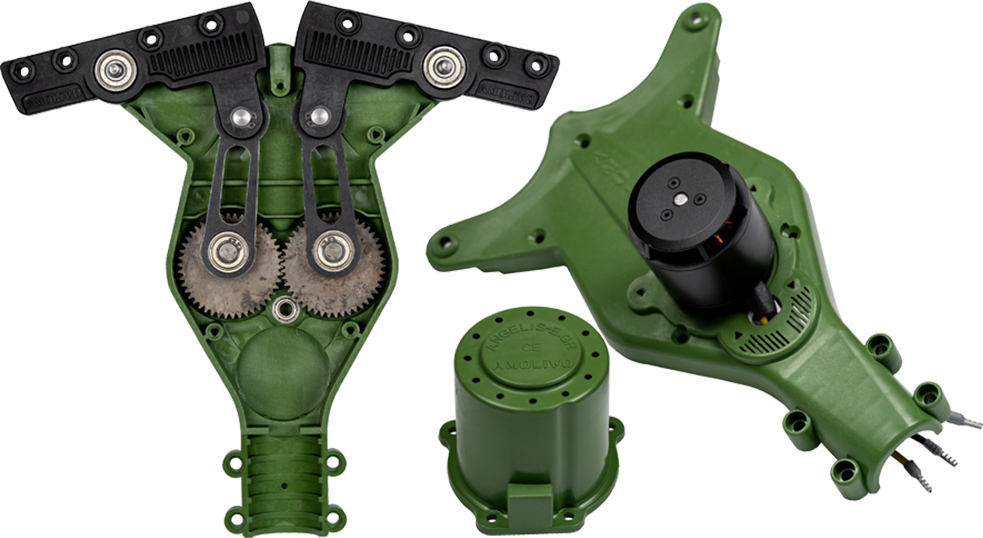 Το Amolivo είναι εξοπλισμένο με τελευταίας τεχνολογίας μοτέρ (τύπου brushless) και με ρυθμιστή στροφών έτσι ώστε να μπορείτε να προσαρμόσετε τις παλμικές δονήσεις του μηχανήματος ανάλογα με τις ανάγκες και τον τύπο της ελιάς.