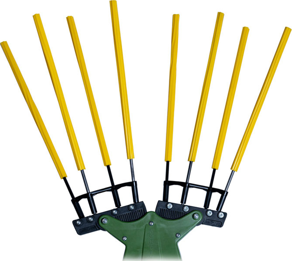Η κάθε βάση φέρει 4 ανθρακονήματα που είναι γερά στερεωμένα με ειδικό ελαστικό καλούπι δικής μας επινόησης .Οι δυο βάσεις σχηματίζουν σχήμα V και έχουν σχεδιαστεί για να προσφέρουν το μεγαλύτερο εύρος ραβδισμού στην αγορά (54cm μέγιστο εύρος).