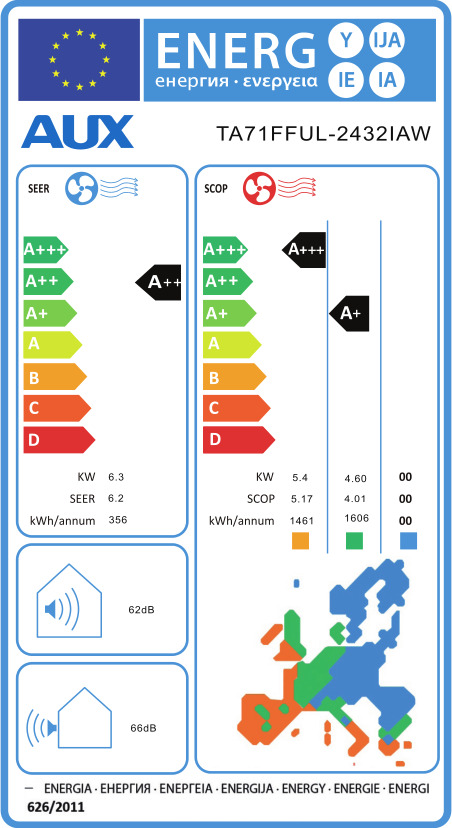 Το κλιματιστικό ανήκει στην ενεργειακή κλάση A++, στην ψύξη και στην ενεργειακή κλάση A+ στη θέρμανση (μέση ζώνη). Η ενεργειακή κλάση μετριέται σε μια χρωματική κλίμακα επτά βαθμίδων από Α+++ έως D, με την κλάση Α+++ να είναι η αποδοτικότερη, ενώ αντίθετα η κλάση D, η ελάχιστα αποδοτική.