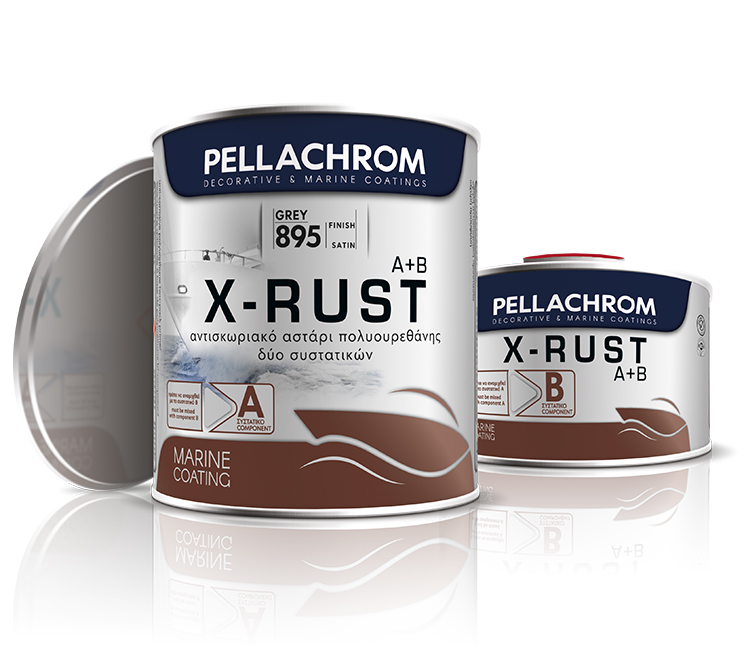 Το X-RUST είναι αντισκωριακό υπόστρωμα πολυουρεθάνης 2 συστατικών για νέες ή πρώην βαμμένες επιφάνειες σιδήρου, φθαρμένου γαλβανιζέ και άλλες εσωτερικές και εξωτερικές μεταλλικές επιφάνειες. Τα ισχυρά αντισκωριακά πιγμέντα του προστατεύουν το μέταλλο από την διάβρωση και τη σκουριά σε παραθαλάσσιο ή υποθαλάσσιο περιβάλλον. Είναι ιδανικό για ναυτιλιακή χρήση και για υπερκατασκευές. Δίνει λεία επιφάνεια, για υψηλής ποιότητας τελειώματα. Αποτελεί ιδανικό υπόστρωμα των τελικών πολυουρεθανικών χρωμάτων POLYGLOSS, ANTISKID καθώς και της σειράς υφαλοχρωμάτων TROPIKAL.