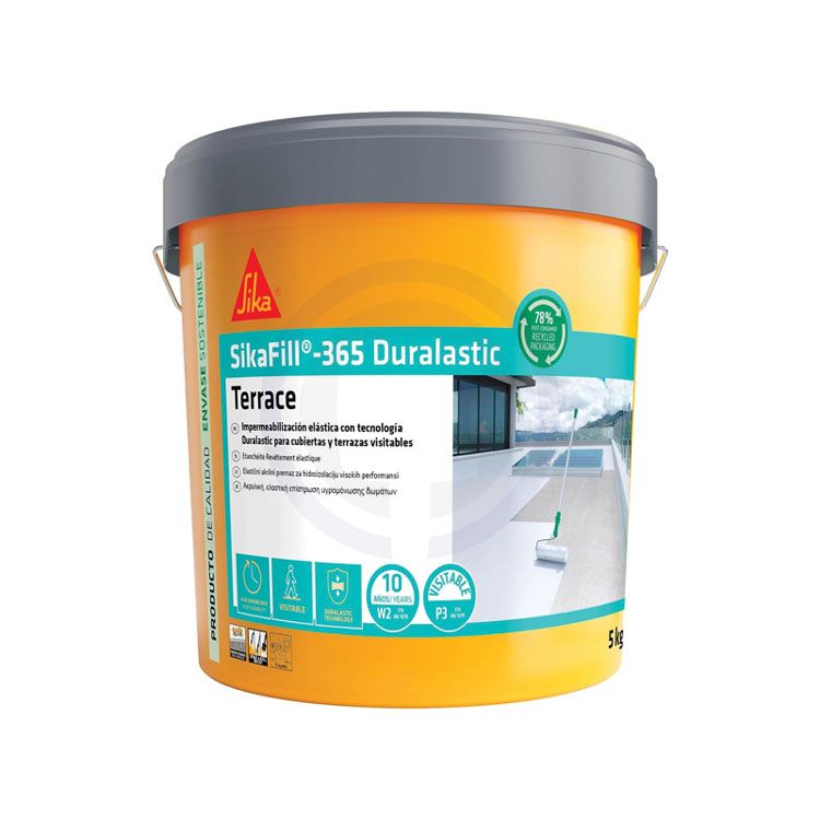 Το SikaFill®-365 Terrace της εταιρείας Sika, είναι μία λευκή ελαστική επικάλυψη, κρεμώδους σύστασης, βάσεως συμπολυμερών στυρενίου-ακρυλικών σε υδατικό γαλάκτωμα. Το SikaFill®-365 Terrace μετά την ωρίμανση σχηματίζει μία εύκαμπτη, στεγανοποιητική και ανθεκτική μεμβράνη χρησιμοποιώντας την τεχνολογία Duralastic. Απλώνεται χωρίς να έχει άναγκη συμβατικά μέσα, χωρίς να παρουσιάζει θρόμβους ή σβόλους. Αφού στεγνώσει, είναι αδιαπέραστο από τη βροχή και ανθεκτικό στις καιρικές συνθήκες, όντας ταυτόχρονα βατό. Διεισδύει στις ρωγμές και χάρη στην ελαστικότητά του, τις γεφυρώνει και τις ενισχύει. Δεν είναι τοξικό και δεν συνεισφέρει στην ανάπτυξη και εξάπλωση φλόγας.